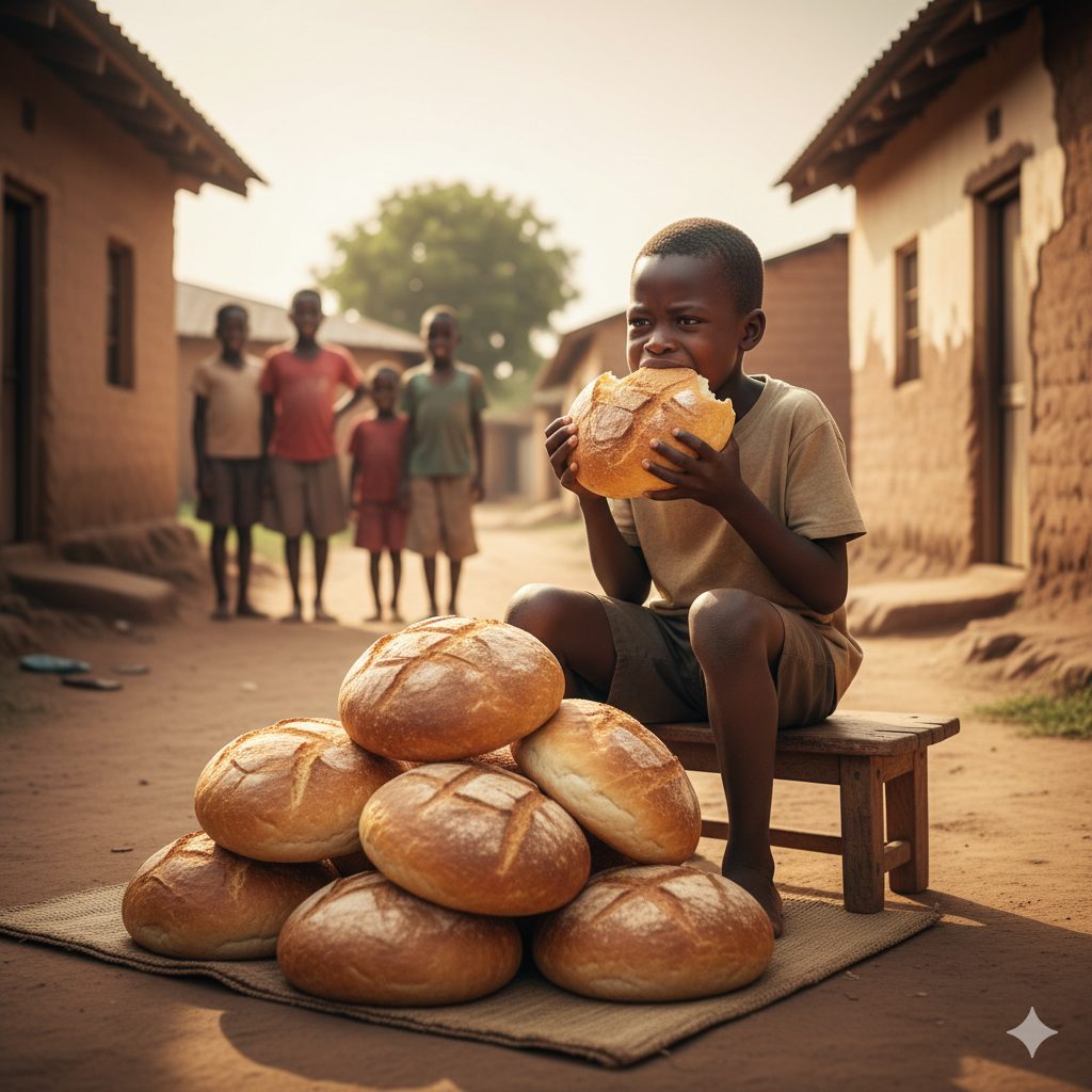 Sem dizer mais nada, chamou-me para acompanhá-lo até à padaria mais próxima. Observava em silêncio enquanto ele colocava pães no saco: um, dois, três… dez. Eu já sabia. Criança aprende rápido quando o medo ensina.