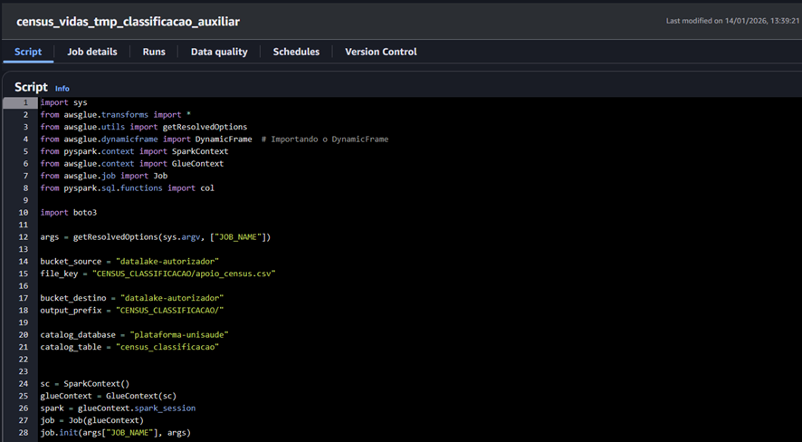 Img. 04 – Script of the job census_vidas_tmp_classificacao_auxiliar