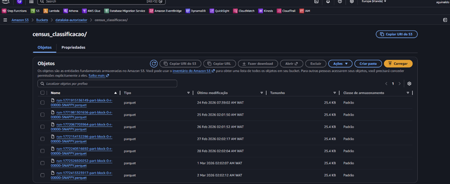 This job creates the Parquet files, which are saved in the census_classificacao/ folder within S3.